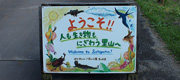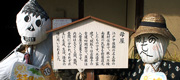 たて看板の横に案山子がたっています。(案山子コンテストが行われた後でした)